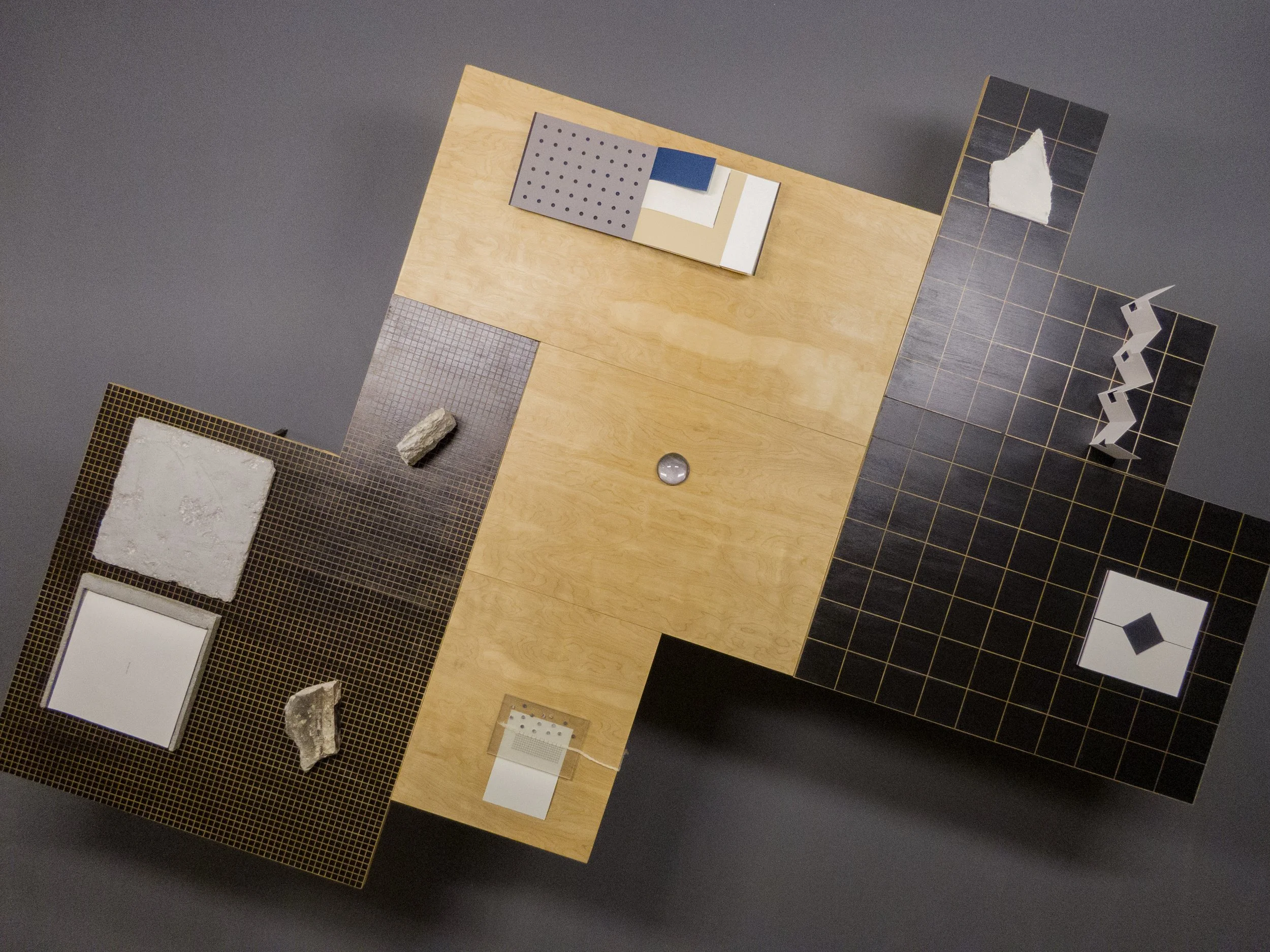 In Between Islands and Peninsulas, three separate elements are installed as one larger table and function as tangible representations of three distinct parts of Linares’ journey: the island of Cuba, the ocean between, and the Florida peninsula. The tables have grid-like patterns the artist utilizes to map the spatial relationships between the different places. The grid becomes a way for Linares to contextualize and organize her personal narrative. On the tables, she places artist books that are chapters of a larger story, like topographical elements in a scattered geography.